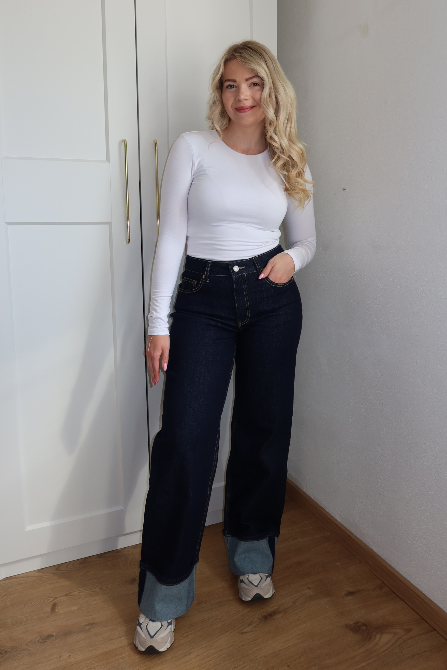 AZURE high waist wide leg jeans met omslag - dark denim