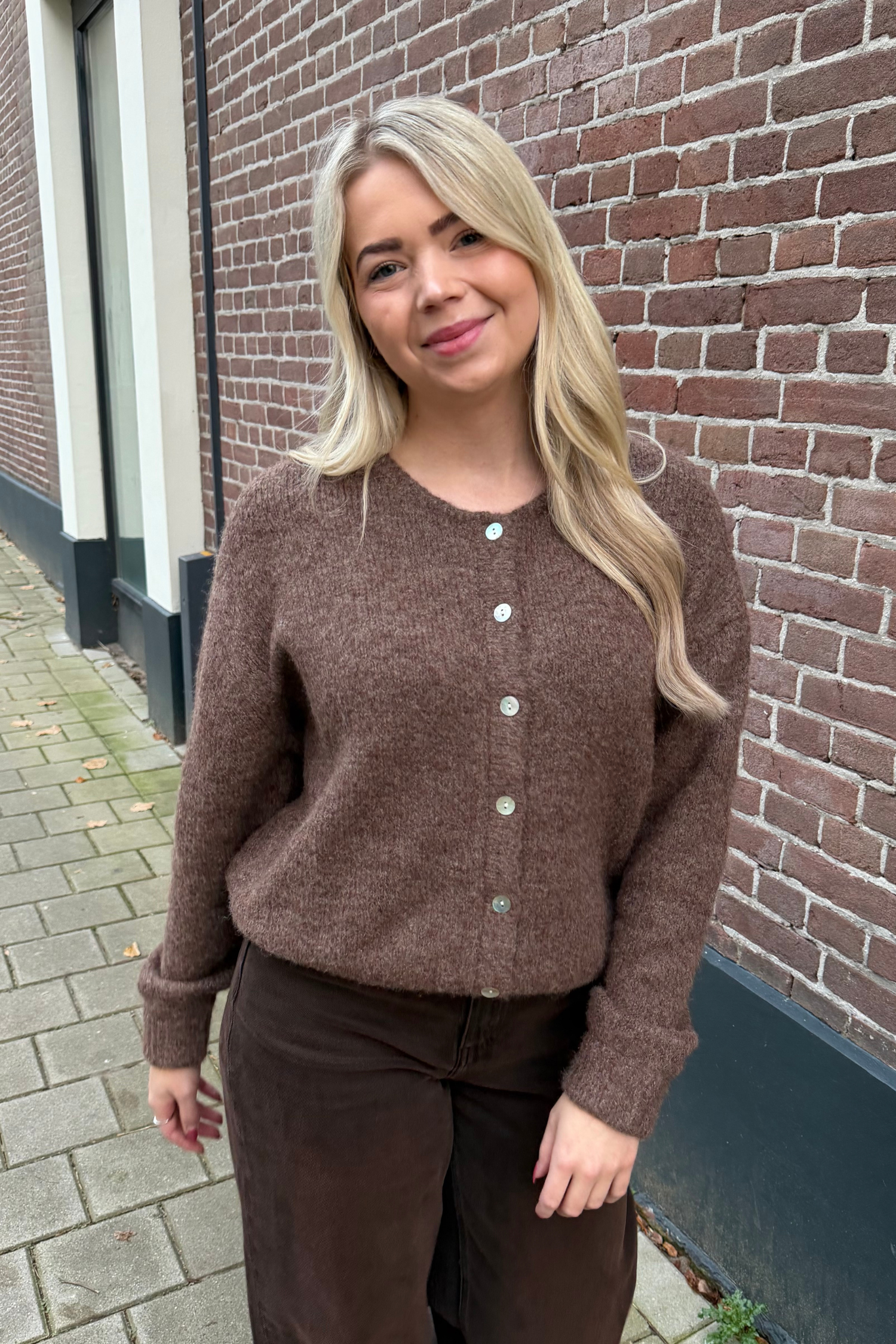 De ELLA trui is een comfortabele knit met knoopdetails aan de voorkant. De trui heeft een zachte feel en een... Lees meer