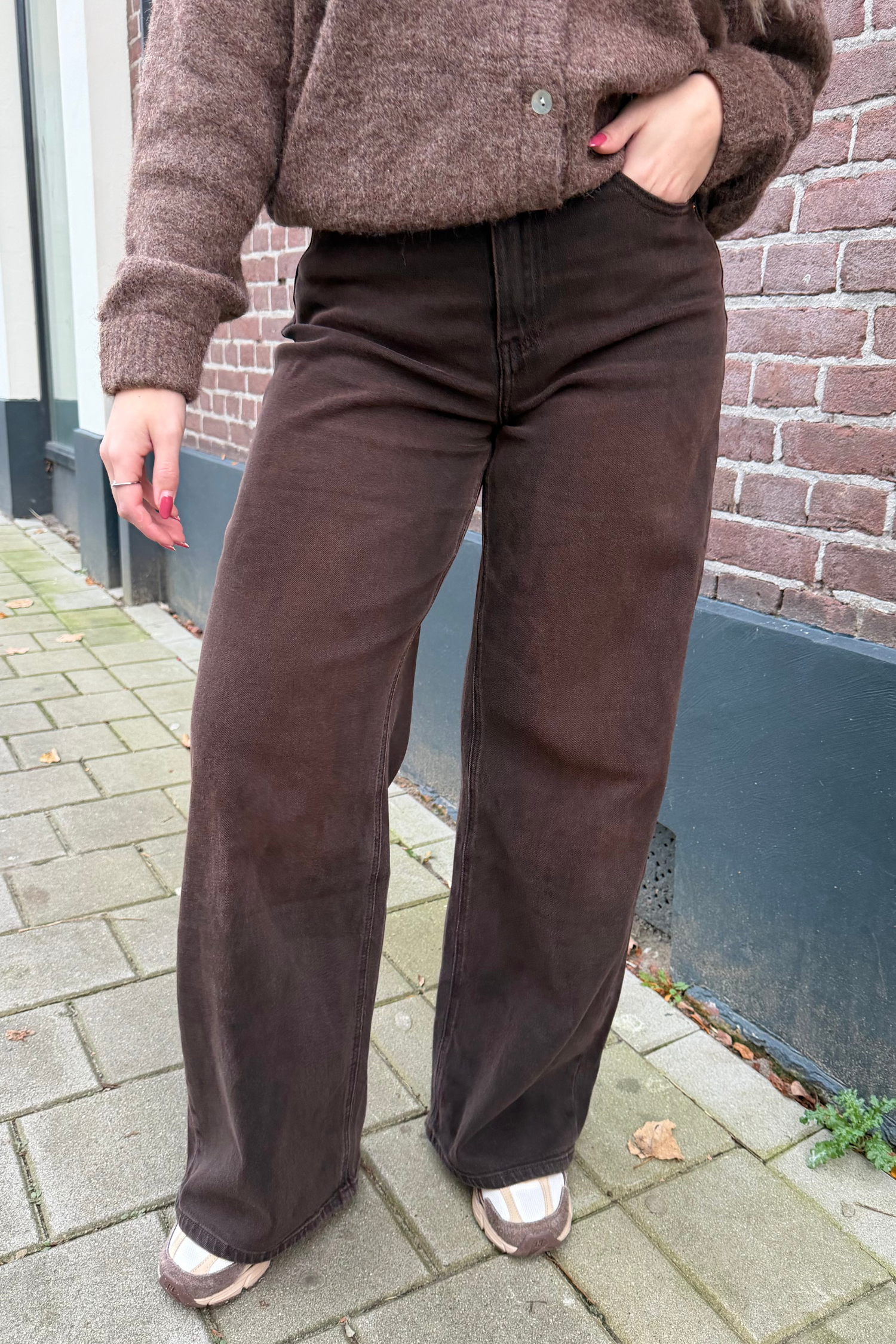 De HAZEL jeans van Queen Hearts is een high waist wide leg jeans in de trendy herfstkleur bruin. De hoge taille en wijde pijpen geven de broek een stijlvolle en moderne uitstraling. De warme bruintint maakt de jeans een echte eyecatcher en is perfect te combineren met andere bruine of neutrale items voor een tijdloze look.