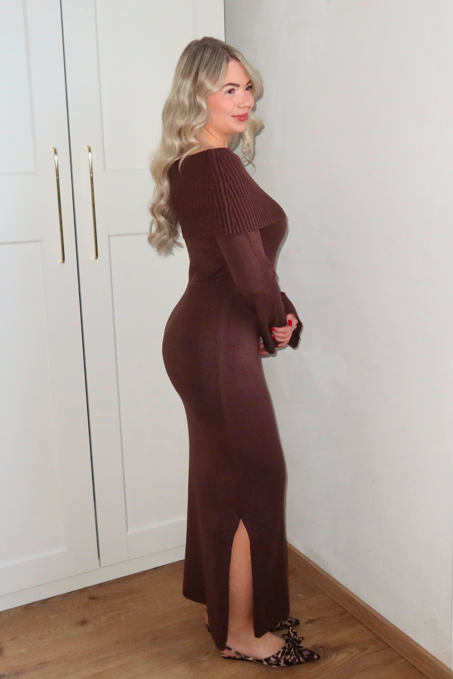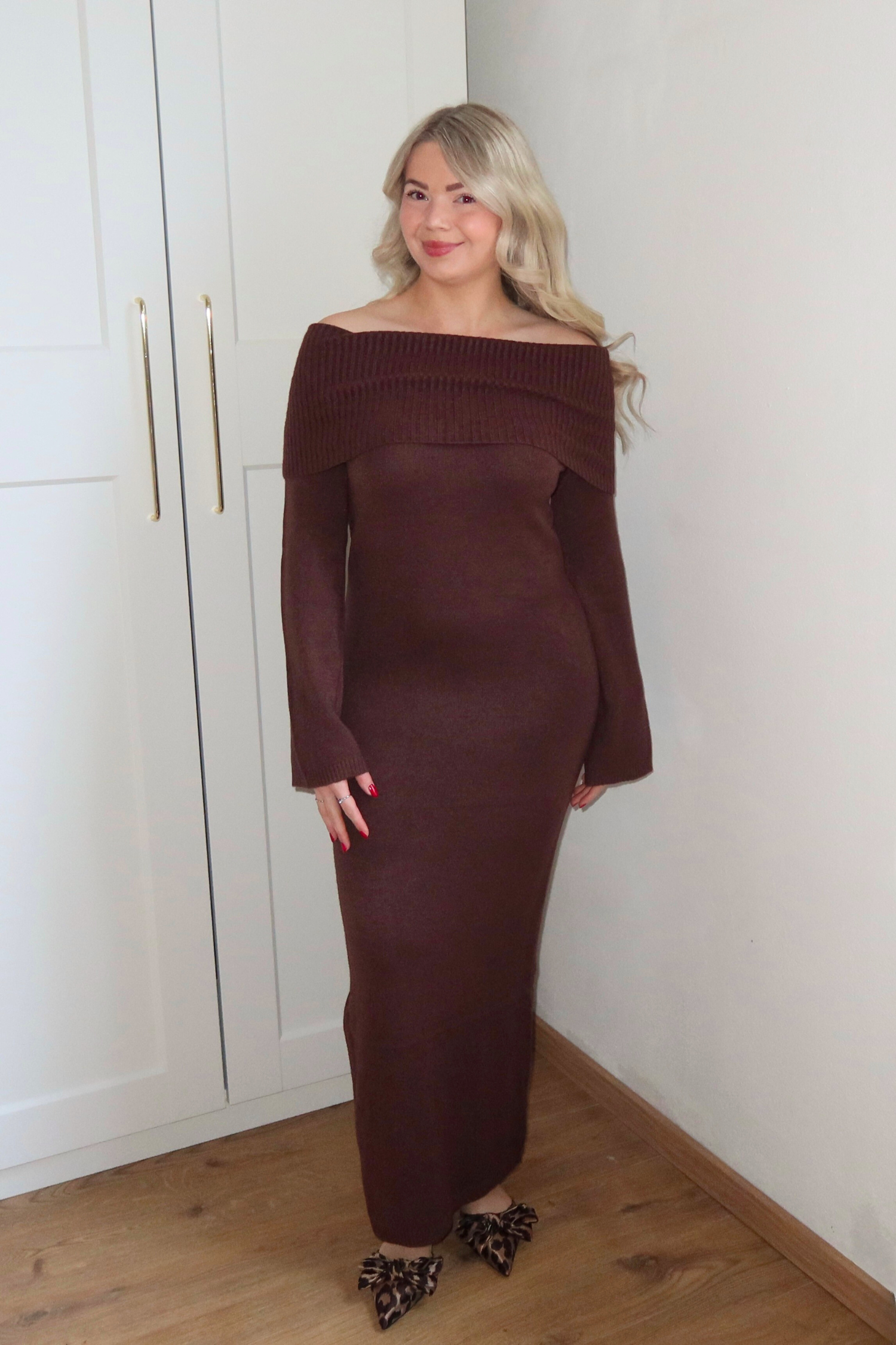 LORI off shoulder jurk - bruin